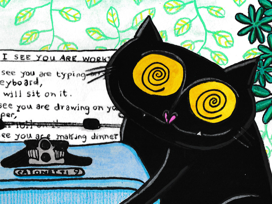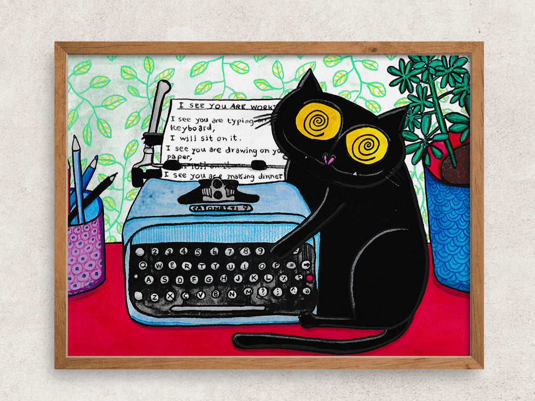 He's a poet and he knows it… and he'll sit on all your things! Printed in the USA. Unframed, 9" x 12".