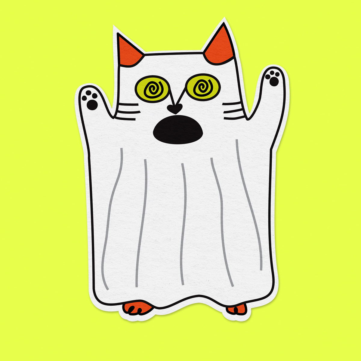 Ghost Cat Vinyl Sticker – 3" Die Cut