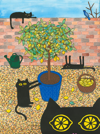 Lemon Tree Cats Dish Towel