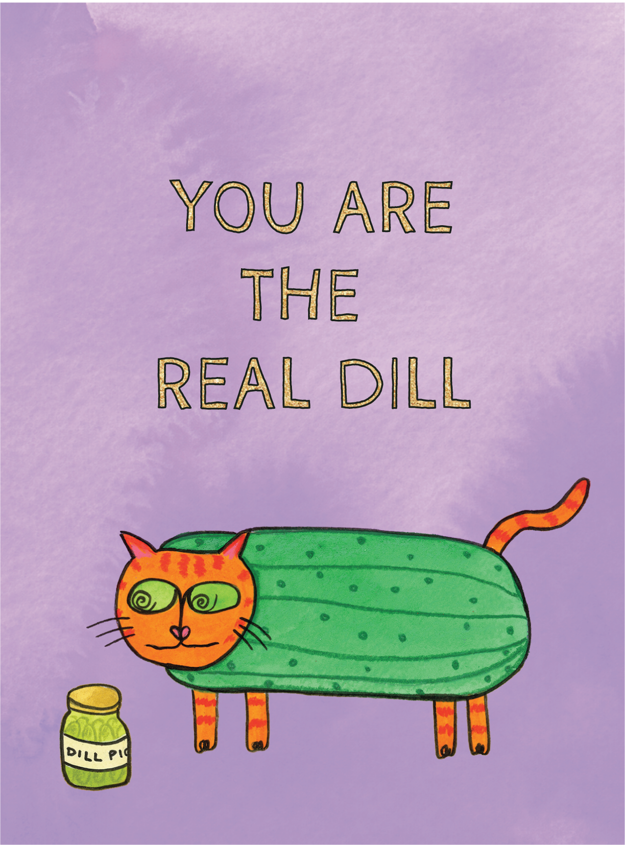 Add a little meowtivation and feline wisdom wherever a magnet will stick! Featuring my original ‘Pickle Cat’ artwork with the playful meowsage “You Are the Real Dill”, this magnet is perfect for your refrigerator, locker, file cabinet, or any magnetic surface that could use a smile.