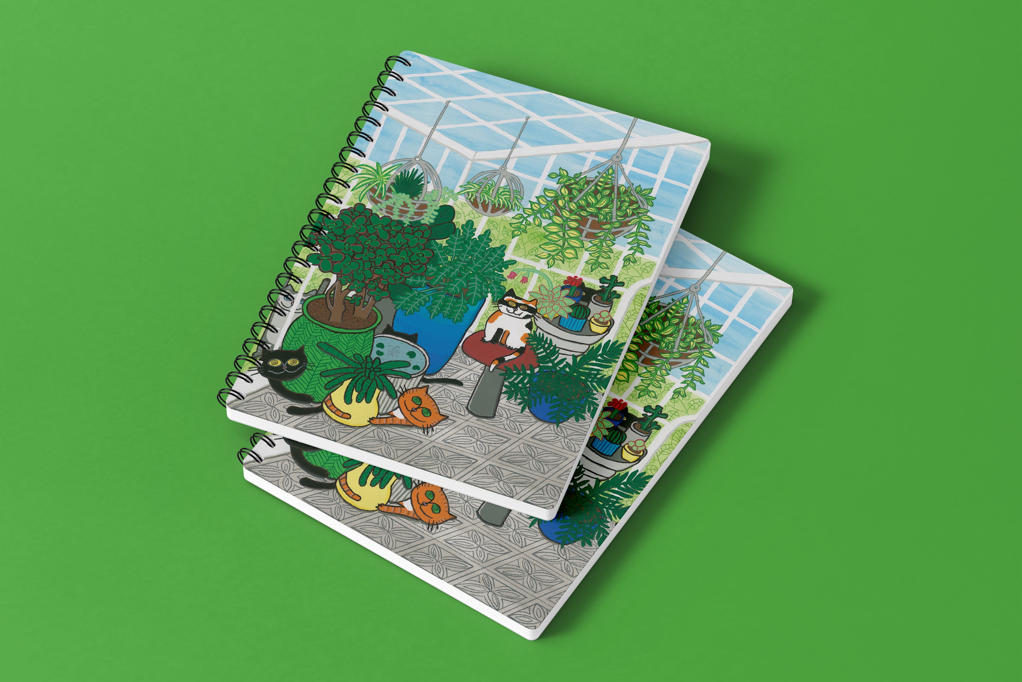 Keep your thoughts, doodles, and purr-sonal musings in style with this whimsical spiral notebook featuring my 'Greenhouse Fantasy' artwork. Measuring 5.75" × 8.25", it's the perfect size to tuck into a bag or keep on your desk.