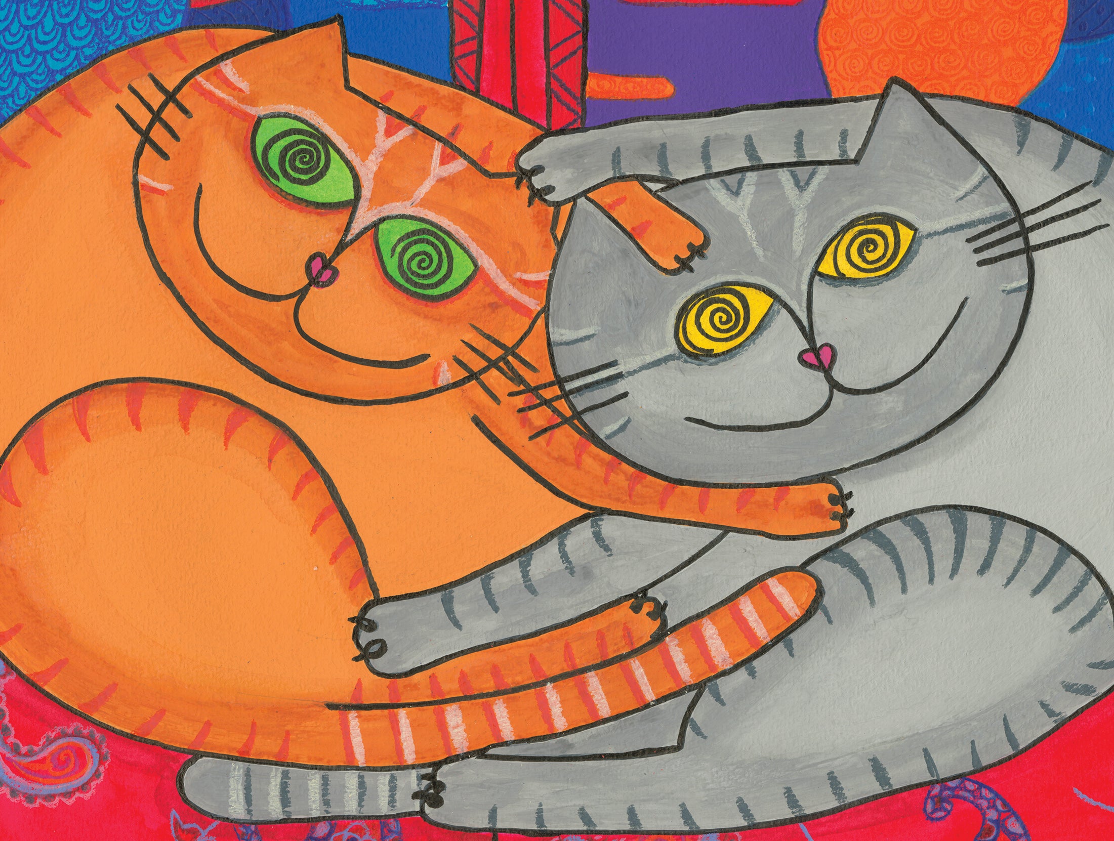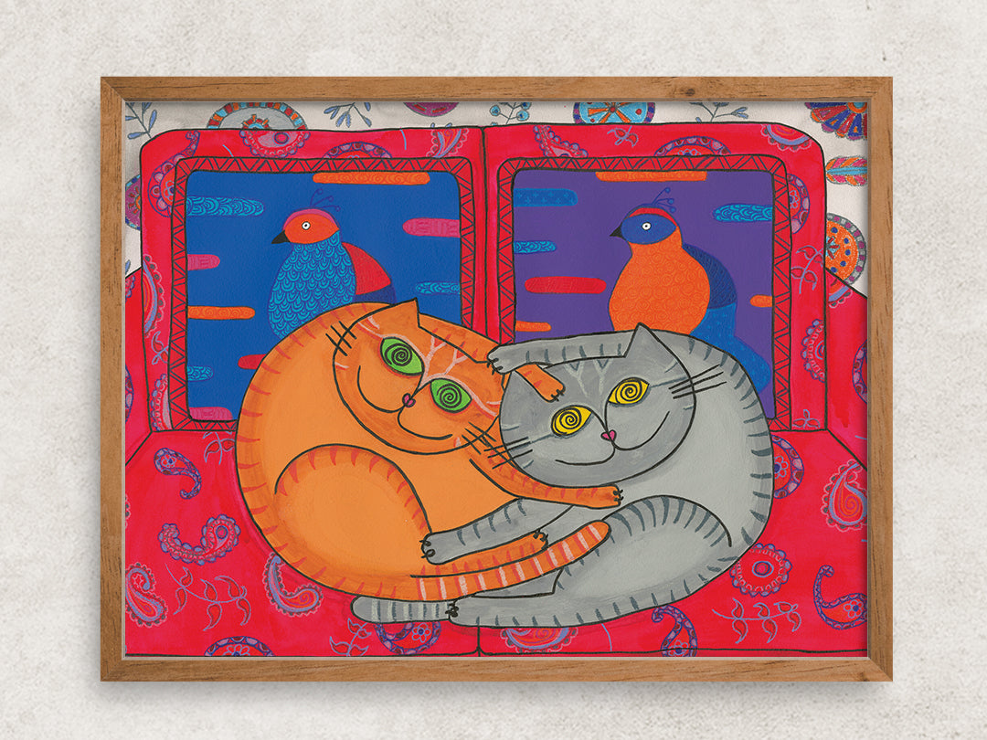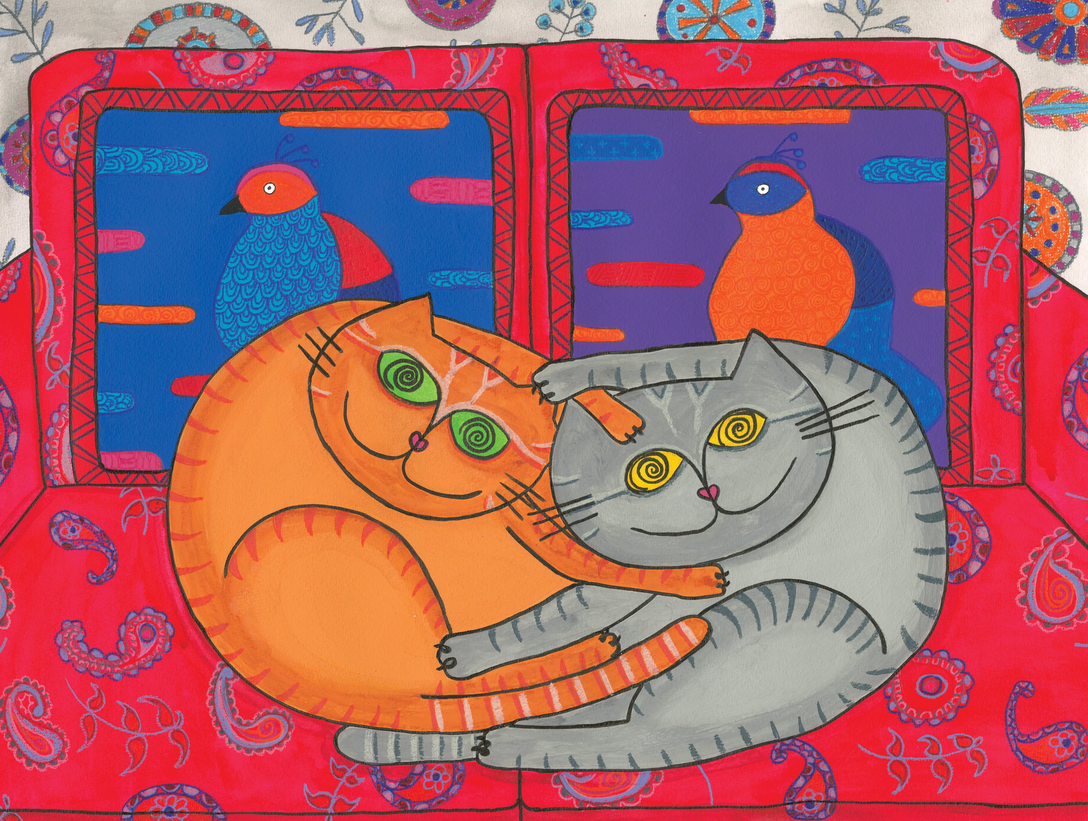 They love each other, they love each other not: all is harmonious… until the fur starts to fly! Printed in the USA. Unframed, 9" x 12".