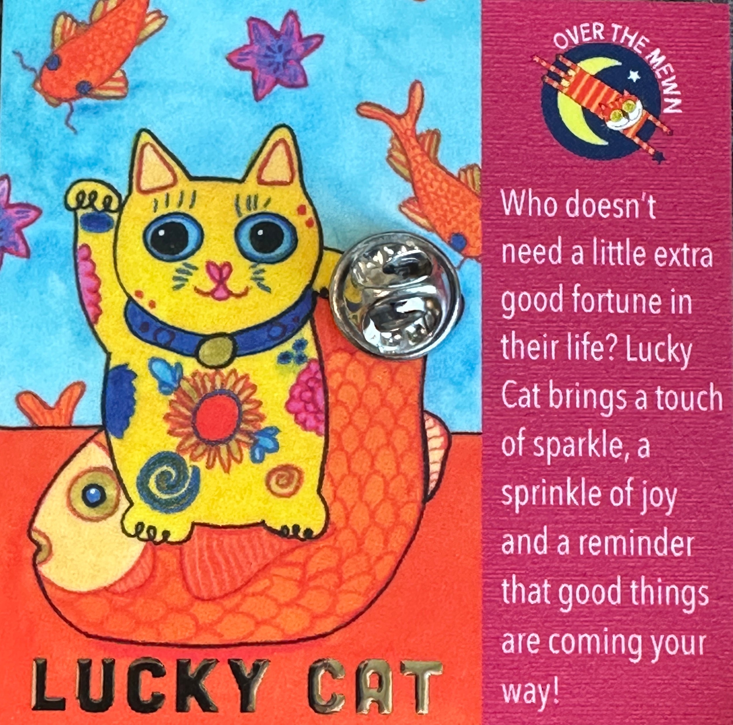 This larger Lucky Cat pin features a premium gold-foil backing card and special details, making it a standout piece in the collection.