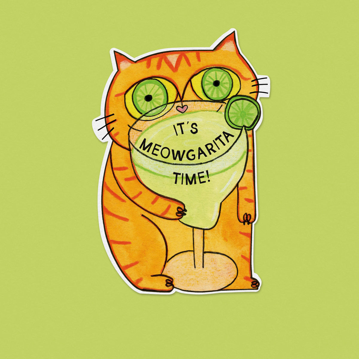 Meowgarita Cat Vinyl Sticker – 3" Die Cut